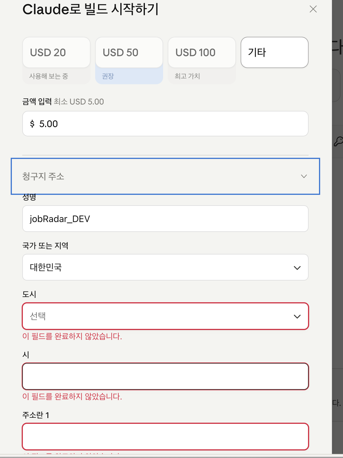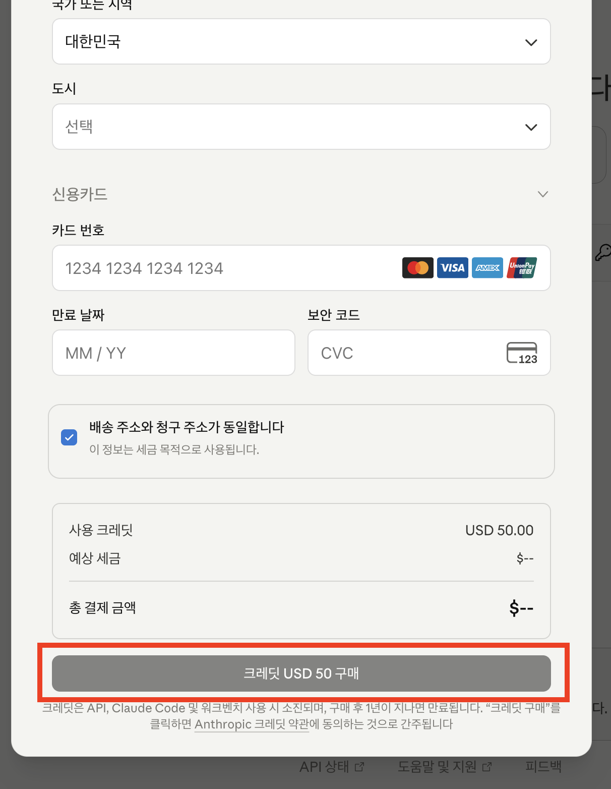 I signed up for the console to try out the Claude API and tried to top up my credit. I entered my card information, address and everything, but the purchase button is still disabled.