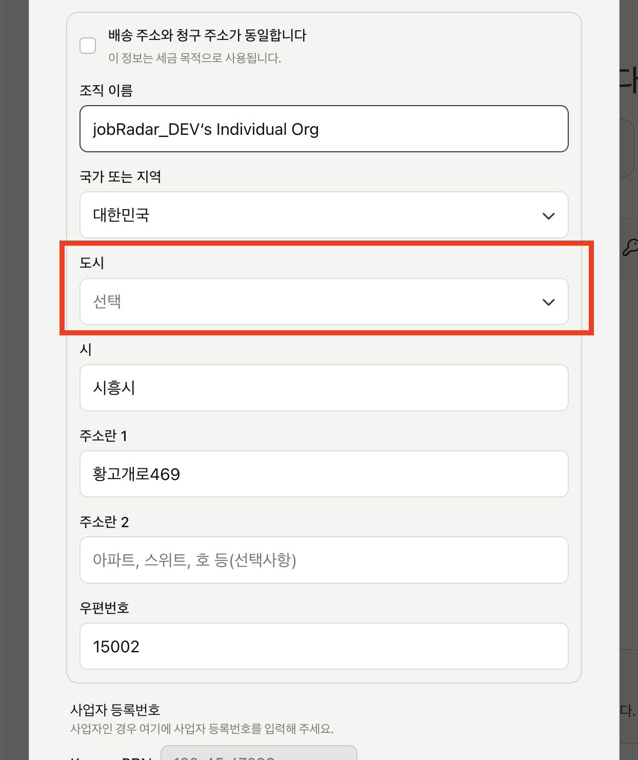 Billing=Shipping is checked but not working | Uncheck it and manually select the shipping address city |
