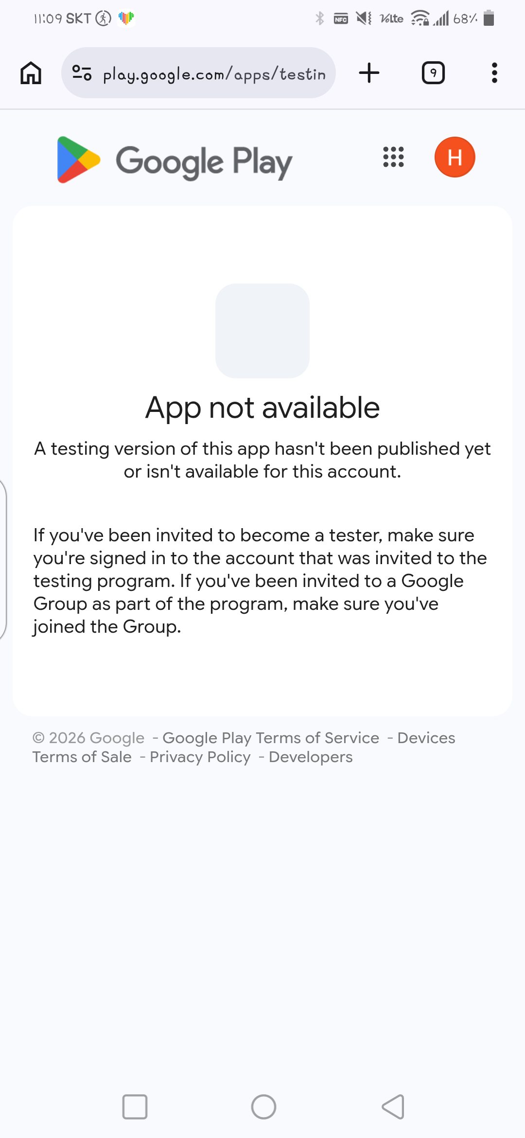 이 상태에서는 테스트 링크를 공유해도 상대방이 앱을 설치할 수 없다.